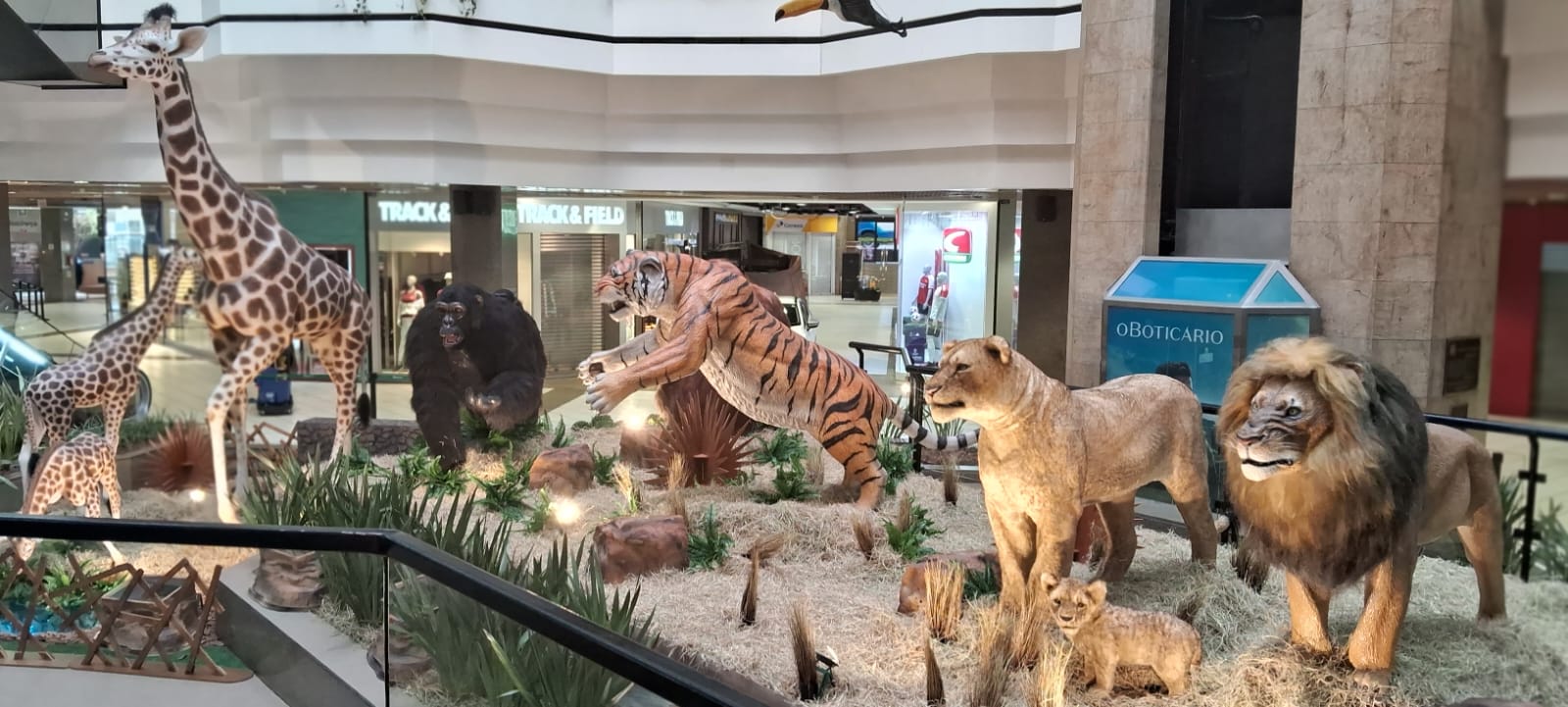 Beiramar Shopping cria experiência imersiva com o mundo animal, oportunizando ao público conhecer 22 animais em uma exposição inédita, gratuita e com uma jornada animatrônica através de selvas e savanas.