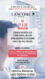 E para surpreender ainda mais, este teste é gratuito! Estará disponível na segunda e terça-feira, dias 27 e 28, na Idéli Oui Beauty, no Piso L2. Mas é preciso agendar horário com antecedência, viu? O telefone da loja é (48) 99914-0398. @ideli.oui